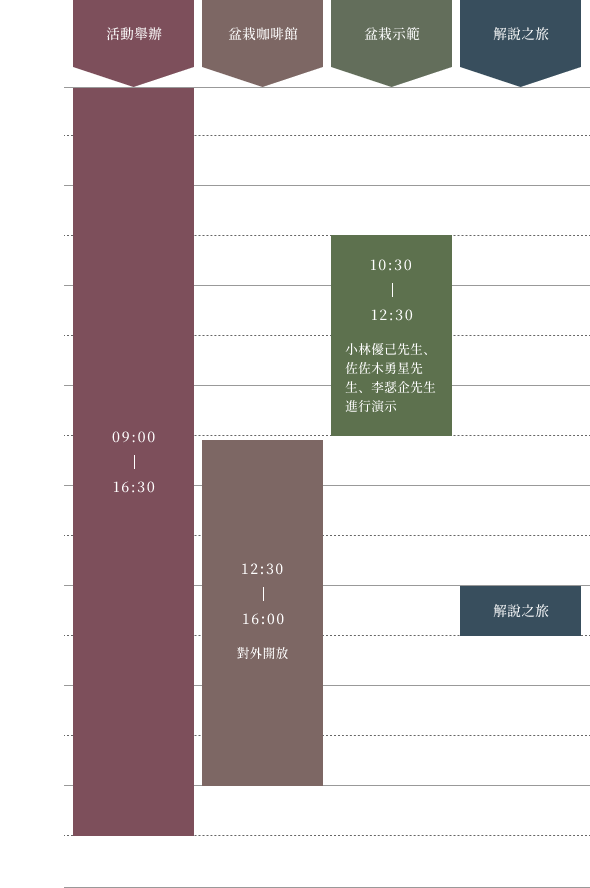 ※ 11/22日(週五)、23日(週六)、24日(週日)、10:30~12:30之間,只有持有"展示觀看+盆栽咖啡館"門票的人才能使用。"