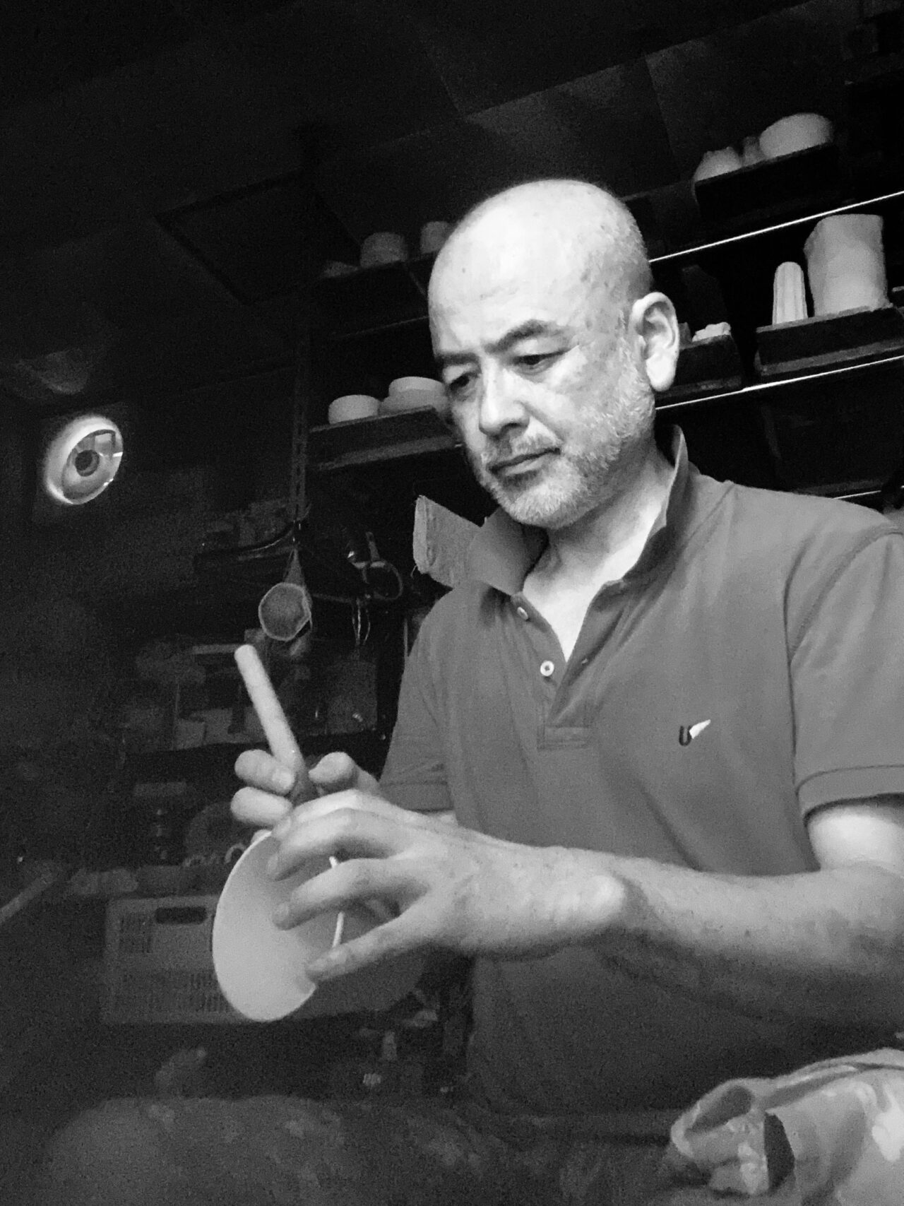 作品的主題盆栽 - 是日本人對自然觀與美意識的極致凝縮,是一種將外部無限擴展的宇宙納入其中的世界觀,並讓人感受到超越個人人生的時間軸。在這個空間與時間、以及「當下」現實之間的邊界上,存在著「陶瓷」。 我的工作是重新燒結經歷無法想象的時間和大地變動產生的"泥土"和經過漫長的歲月成長並完成任務的樹木的"灰燼"。這是必須全心投入才能創造的工作。
