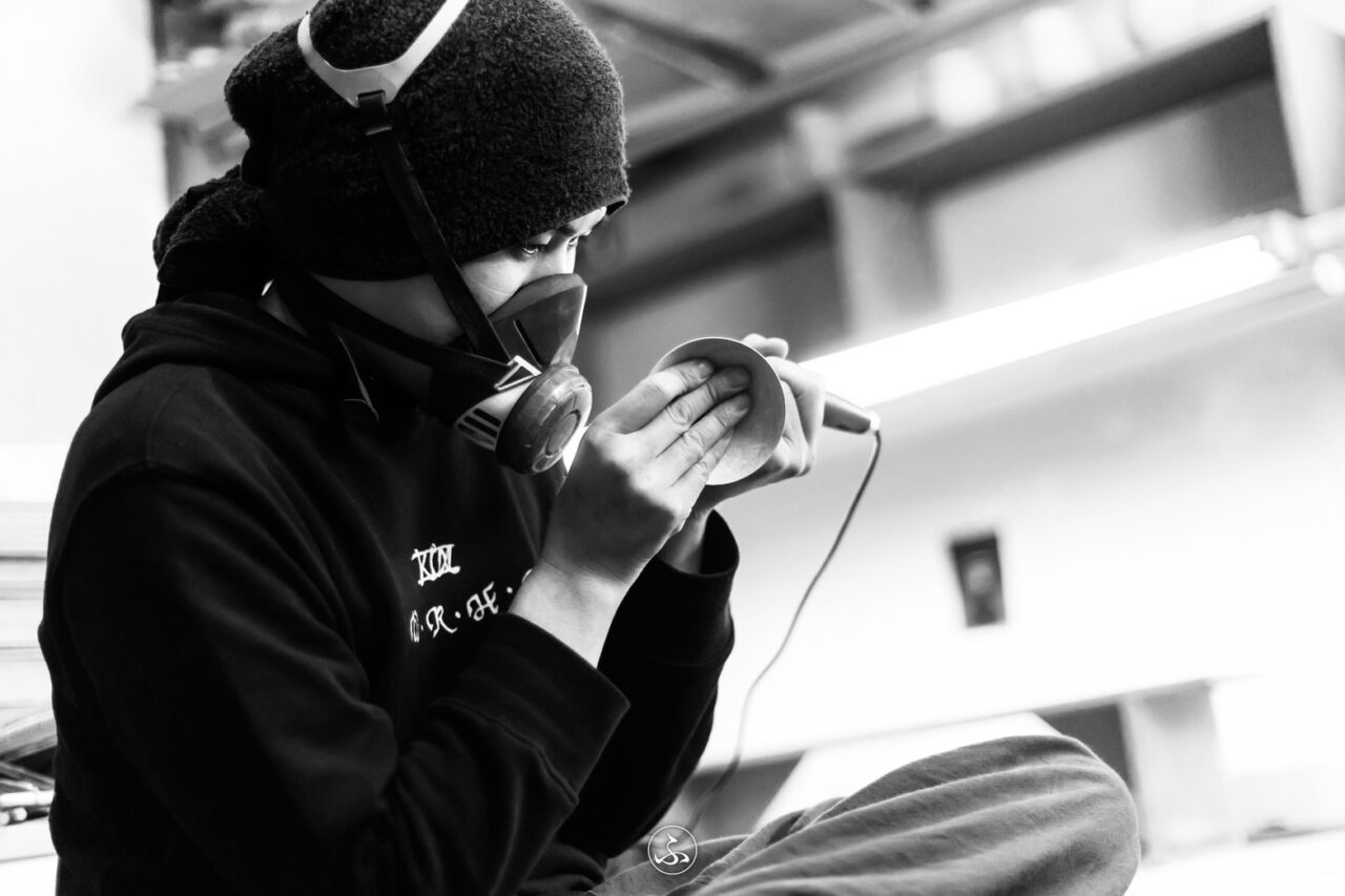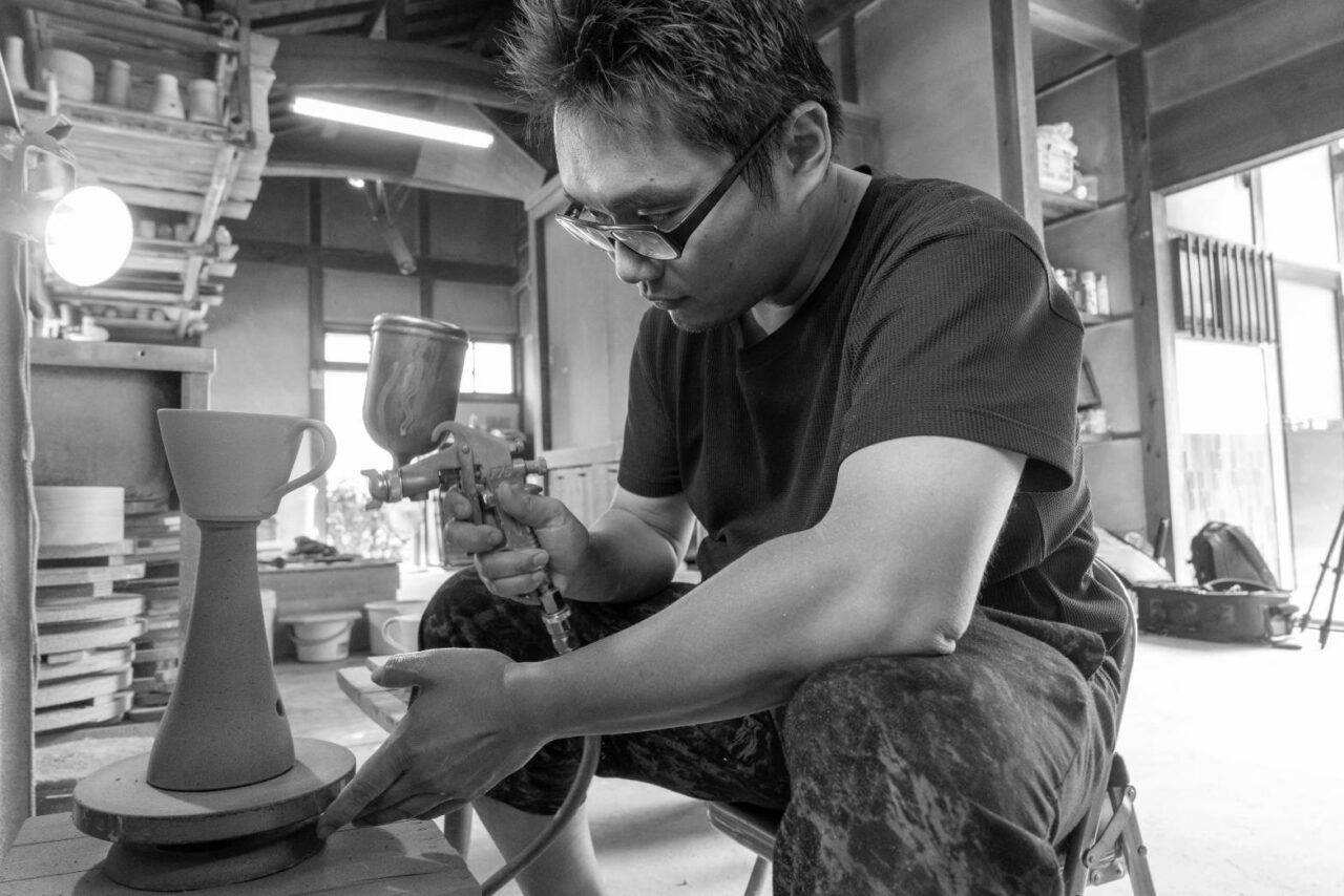 作品的主題在擁有京都的自然文化和風雅香氣優美和溫柔的土地上,要想從無到有創造作品,我使用自然界的「岩石、土、水、火」,並注入「心」與「氣」,使用自己調配的釉藥,以「深海的遺跡」為主題進行創作。當我製作餐具等作品時,特別重視與周圍事物的和諧,希望能創作出貼近生活的作品。
