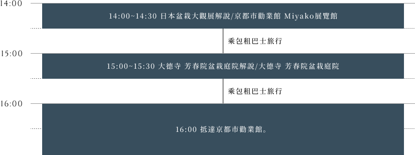在「日本盆栽大觀展」的解說之旅結束後,將乘坐專車前往大德寺芳春院的盆栽庭園。這是一個由盆栽研究專家川崎仁美女士帶領的導覽,她將以淺顯易懂的方式為初學者解說,讓您享受盆栽深奧的魅力。